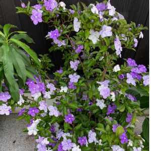おはようございます(*^▽^)/★*☆♪ 先日─ またまた、お隣に盗撮に行きました😅 ニオイバンマツリ💜(匂番茉莉) ナス科 ブルンフェルシア属 別名─ブルンフェルシア 花言葉…浮気な人 夢の名 幸運 熱心 ☆咲き始め濃い紫色で、薄い紫色から最後に白色になる! ※因みに、開花時期は4~7月です((ノ∀`)・゚・。 アヒャヒャヒャヒャ