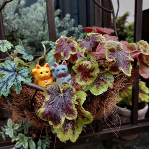 🏷️ニャンニャン祭り 参加させてくださいニャ~🐈️ お気に入りのヒューケラを寄せてます💚💜 雨に濡れてしっとりしてます🌿💧 ネコチャン達は華ちゃんから前に頂いた招き猫ちゃんです😺😺 大変気に入ってま~す☺ ありがとうございます😆💕