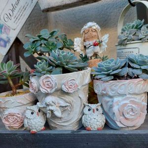 🏷️エンジェル祭り 🏷️フクロウ祭 参加させて下さいね👼🦉 ☆eri☆さんのコルクエンジェルさん👼 箱入り娘なので風邪をひかないように撮影後早々とお部屋に入って頂きました👼💕 トワさんのエンジェル鉢と薔薇鉢👼🌹 居心地が良いのか植えた多肉チャン達は元気に育っています❤️ フクロウさんも嬉しそう🦉🦉🎵🎶 ズッキュ~ン💘💘💘💘💘