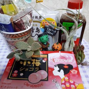 こんにちは✨😃 GS友のみちのすけさんから この間のお礼にとこんなにたくさん🎁を送って下さいました😆💕 先ほどついたホヤホヤです(*^ω^) 昼から仕事なので笑顔で行けます 😊🚙💨 みちのすけさんが大切に育てられたラッキーガーると星兎耳と白雪爪蓮華と立派なエアプレツ💚 ご当地お菓子や焼き肉のたれ、可愛いいハロウィーンの置物、わたしの好きなブレンディスティック☕や🍬も入ってる🎶と喜んでます(^ω^) 宮崎県に行った事がないので行ったつもりでいただきます🍴🙏💕 本当にありがとうございます❤️ 繋がりに感謝します💓