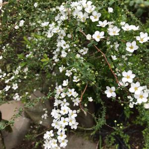 咲き出したユキヤナギ 咲き揃う頃は見事だと思いますが 私は咲き始めのこのくらいが好きです 小さな白い蕾が舞い落ちる雪だったり 春を告げる小さな妖精だったり その時の気分で感じ方が変わるのです☺️ ただユキヤナギを格好良く剪定するのは難しいです💦
