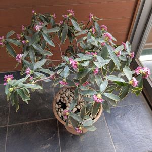 沈丁花ちゃんです。 赤花 黄花 ちゃんたちは、元気に育っているのに、白花ちゃんだけ 枯れたので、お迎えしました。 結構大きくなっていたのですけど…。