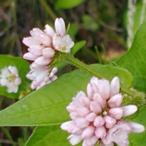 ミズヒキ(赤花水引) 水引の 花穂が伸びて 小さな花が 光を透して 光って見えました とても 丈夫くて ベランダの鉢で 毎年 秋を 知らせてくれてます