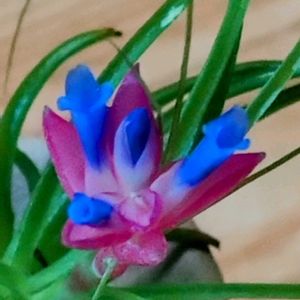 🍀チランジア・ストリクタ🍀 12月28日に投稿したエアープランツに青いお花が咲きました。 その時はピンク🩷のお花が咲くんだろうと思っていましたがなんと鮮やかなブルー💙 🏷ありがたハッピー百均に参加させて下さいね。