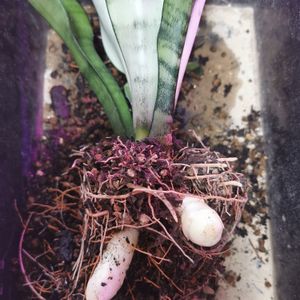 サンセベリアシルバーキングの鉢が変形してきていたので、急遽鉢から抜きました💦💦 根は既にパンパン。 凄い太い茎が2本あり (これじゃあ変形するよね……) 秋に植え替えしたばかりだったんだけどなぁ〜 さすが室内!!