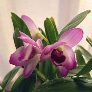 デンドロビウム スイートキャンディ すっかり花が終わったあと、ひょっこり遅れていくつか咲いています🎶😃