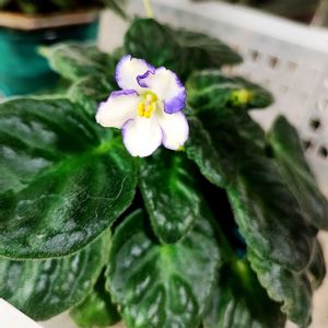 セントポーリアが咲いています。 ⬆️今年2月11日に購入した白花にグリーンエッジの花。一回り大きくなって開花中😄 ⬇️セントポーリア チコ。 本来なら白の縞斑がもう少しハッキリ出るのですが😅 5月に株分け後の初開花😄 咲いてくれたからいっか〜😆