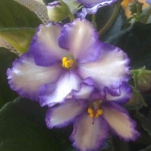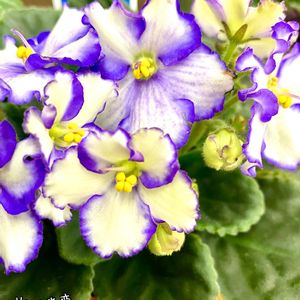 セントポーリア、私には育てるのが難しいですが、好きなお花です💕 白に紫色の覆輪がとても綺麗です。