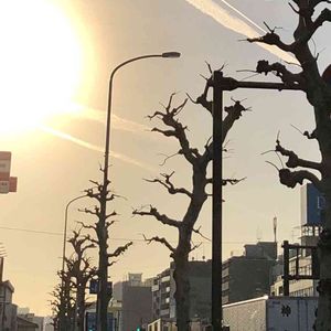 ユリノキの街路樹 国道15号旧東海道の師走 正月恒例の箱根駅伝のコース 私はゆっくり~ひと駅歩いてる(^_^*) 〈西日射す神奈川宿あたり〉