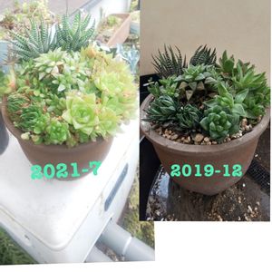 ハオルチアの寄せ植え🎵🎵 🌱十二日の巻 🌱万像 オーロラ 🌱ギョクセン 札落ち 🌱オブツーサ 🌱宝草錦