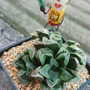 ハオルチア寄せ植え お水💧💧💧あげたら 何? 新芽がー🌱 三本出てる❗️ 種蒔きしてないけと🤔 まっ、可愛いし💕 そのまま様子みまーす(*☻-☻*)