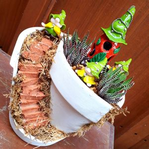 ブロークンポットガーデン 前に作ったブロークンポット ひとつ残ってたので…… 小人さんの🏡お家 しばらく、引越しです⸜(* ॑꒳ ॑* )⸝♡
