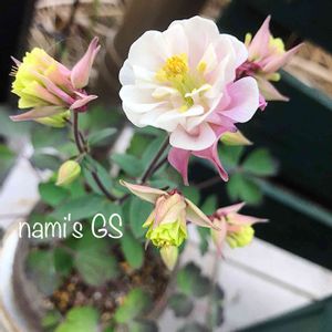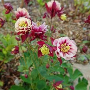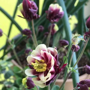 春のお迎え祭り第4弾 オダマキ アキュレギアウィンキーダブル フリフリドレス👗のようです。 鉢植えで楽しんだ後は地植えにしようと思います♪
