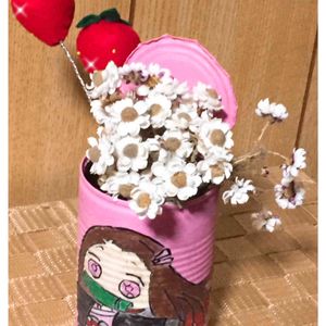 こんばんは⭐️ ぷりまみさん作の禰豆子のリメ缶にドライの花かんざしを入れてみました〜🌼💕 花かんざしも可愛いけど、禰豆子かわいい〜😍🎶
