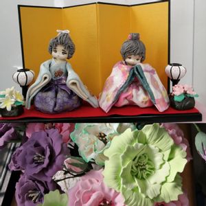 紙粘土作品 私のためのひな飾りとトルコキキョウのつもり💕