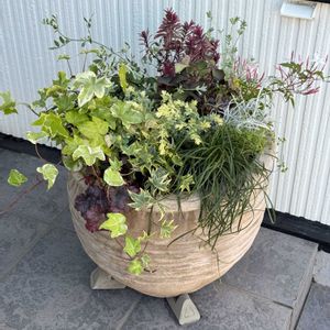 今年初の寄せ植えです𖤣𖥧𖡼.𖤣𖥧 朝晩の気温が0℃前後まで下がるので まだ早いかな? と思いながらも 早く作りたくてウズウズꕀ⋆♡♡ ひとつだけ作っちゃいました(๑′ฅฅ‵๑) 植栽は昨年から冬越しした子が少しと、 殆ど園芸店で買った子たちですが、 まだ種類が少なく思うように揃わなかったので ちょっとアンバランス(*ノωノ) もう少し植栽が出揃ったら仕立て直したいと思います...。