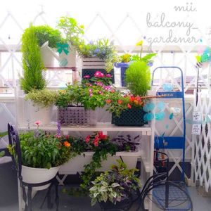 DIYフラワースタンド♡ : 早くから朝陽が当たり♡ 風通しが良く♡ お世話しやすい高さ♡