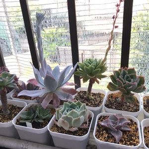 毎日暑いですね🫠💦 今年は特に暑くて ジュレ多肉も多発してて心配です💦 昨年秋に南側に多肉棚を増設したので 初めての夏☀️ 朝の7時前から午後2時頃まで当たります☀️ 遮光も今は50%にしてますが これからの日中は更に遮光しないと いけなさそう😰 この場所だと陽当たりがいいので 寄せ植えが特にチョリチョリになって しまってチーン🥵 頻繁に水遣りも怖いから仕方ないんだけど… 遮光について 何かアドバイスくださーい🙇♀️ 因みにおひとりさまはほとんど東側の棚に 置いているので午前中の3時間位 移動して陽に当てています☀️