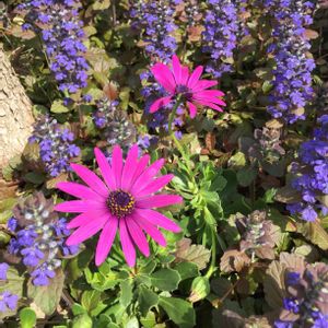 庭のシンボルツリー🌲(ハナミズキ)の下にアジュガと一緒に咲き始めてます