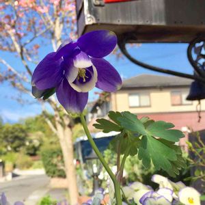 鉢植えのオダマキ第1号が開きました。🤗 地植えは、あちらこちらにあるのですがまだ咲いてませーん🎶 宿根で毎年💜手もかからず咲いてくれます
