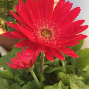 鉢植えで毎年絶やさずに咲いてくれているガーベラ 今年は花付きが良い方で嬉しい 五本の花が開いてます 肥料のタイミングが良かったのか ナメクジ避けが効いてくれてたからなの?