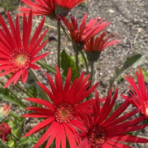 ①②バラ🌹すごく可愛いミニサイズの挿し木苗😊 ただ親が誰かわからない⁇ ウチにはいない子なんだけど一年目だから本来の色ではないのかなぁ🤔 黒ポットになおざりにしていた本当に可哀想な子🌹いつのまにか咲いてそれがまた可愛い色🩷大事にします😅 ③宿根サルビアネモローサ 毎年定位置でちゃんと咲いてくれてる😊 ④オルレア 昨年木の下に吊るしておいたら鉢や株元にタネがたくさん落ち元気に咲いてくれました😊 ⑤ハゴロモジャスミン 小さな苗でも香りは強い💪