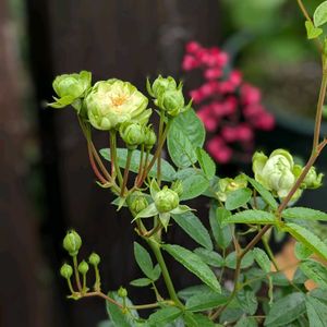 ミニバラ💚グリーンアイス 5月の満開後に切り戻しました その後の二番花たちもそろそろ終盤、グリーンになってきました💚 夏場はひと休みかな😆