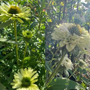 八重のエキナセアハニーデューと一重のグリーンジュエル、緑のお花って大好き😊💚 梅雨の加湿には弱いけれどこの時期から夏中涼しい顔してずっと咲いてくれる優れもの😊💕