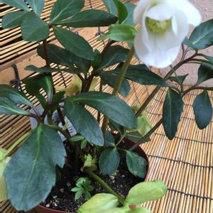 クリスマスローズ🌱 咲くとグリーンで、蕾は白いです(^^) 今はベランダで過ごしています。 庭のどこに植えようかな?、どこがいいのかなぁ?と調べ中考え中です🌟