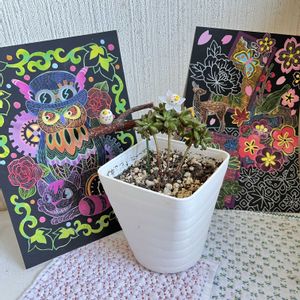 こんにちは♪ 最近ハマってきてるグリーノビアちゃんたちのコレクションです🥰 休眠期で閉じてる姿が可愛すぎる💕 たしかエルイエロはうちにいるんだけど、こんなにいろんな種類の子がいるとは知りませんでした😊 少しずつポチッてたら9種類も! まだ発根してないけどそろそろ植えてあげようかな☺️ 🏷️9キュッとフェス2025 今日DAISOで黒いスクラッチを買いました♪ 絵心はないけどなんか描いてみよ♪