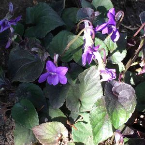 🍀ラブラドリカ🍀 紫式部の和名?もある原種のビオラ😄‼︎ 昨年植えてこぼれ種から出てきたようです😙 黒い葉がとても印象的❣️ 隣に居たフレックルスの姿はないですね🤔 Viola labradorica
