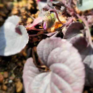 バーガンディー姉さんたちにガン見されて、そっとうつむく黒葉ビオラ ラブラドリカちゃん… 葉の感じといい、花の咲き方といい、今日のお花、ガーデンシクラメンに似てるなと思って…😅