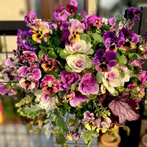 おはようございます☺️ 今日は☁️のち🌞11℃の予報 昨年作ったスリットバスケットの 寄せ植え🍀🌼3ヶ月半たった今😋 葉牡丹が伸びて来たり根ぐさりしたり ビオラ💜アリッサム🤍モリモリに…☆ 今日も元気で🎶 良い1日になりますように😃