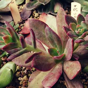 エケベリア属 花いかだ🌱 西日本で置いてけぼりにされていた「晴れの国」も昨日やっと梅雨明けしました☀この後も無事に夏越しできるかわからんですけど、今のうちに「秋の作業」の計画をしておかなきゃと思い、昨夜はそれに没頭してました😂 2年前の7月に「花いかだ」という名札でお迎えした子が待てども暮らせども紅くならないので???と思いながら育てること一年。その子は「ダスティ」と判明😅💦picのこの子は昨年11月にホームセンターで出会い、お迎えした「花いかだ」😊🎶今の時期、ちょっと紅色が薄いんですけどミドリんにはならんみたいです💕「デビー」もミドリんにはならんですよね、あんな感じです🤭 「たっちんの花いかだ」タブをタップでこの子の生長記録のみどりのまとめが簡単に見れます😊🎵 「多肉ラボ©」参加のお申し込みは、1/17のブロンズ姫の投稿からお願いします🤗🌱