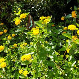 キュンキュン乙女倶楽部の皆さん 今日は今月の倶楽部活動ですよ🍀 七夕様🌌なので⤴️ 彦星と織姫に因んで、寄り添う植物投稿をしましょう🎵 合言葉─素敵な出会い 🏷️は、並んだ並んだよ 飛び入り参加も大歓迎です🤗 コバノランタナにアオスジアゲハ4️⃣