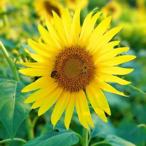 綺麗に咲いたひまわりの花にミツバチが来ていました。