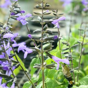 花壇のサルビアの花にオオスカシバが飛んで来ました。