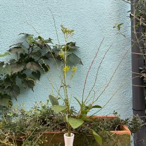 お花が枯れた鉢にミズヒキの芽がたくさん出てきたのでそのままに❣️ 水切れして枯れかかった時もありましたが何とかお花が咲きました。 鉢植えにするとなかなか可愛いですよね💕