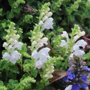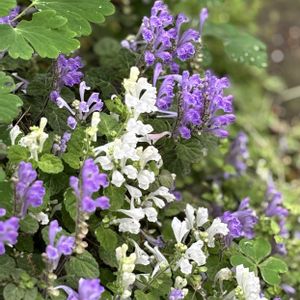 コバノタツナミ ①②庭の隅っこで花盛りです☺️♡紫と白がミックスして咲いてます ③白花 ④紫