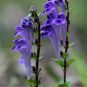 小葉の立浪草(コバノタツナミソウ) シソ科タツナミソウ属の多年草。立浪草(タツナミソウ)の変種で全体に小さい。海岸に近い畑のふちや土手、山の岩上などに生える。葉も小さくて長さ、幅とも約1㎝で、鋸歯の数は少ない。毛の量は変化が多い。花期は4~6月。萼の上には丸い付属物がある。秋に返り咲きする傾向が強く、初冬まで咲き続く。 タツナミソウの名前は花が片側に寄って咲く姿を、泡立つ波が岸に寄せる様子に見立てたもの。タツナミソウ類で葉が小形であるので『小葉の』がつく。葉と茎にはビロード状の短毛を密生するためビロードタツナミの別名もある。 タツナミソウの仲間には日本に16種ほどがあるが、変異も多く識別が難しい。重要な識別点は、茎の毛の状態。毛があるかないかだけでなく、密度の長さ、上向きか下向きか、開出するかなとが重要な識別点になることもある。 小葉の立浪草 ・葉は丸く、長さ約1㎝、両面に伏毛がビロード状に生える ・茎の毛は立毛 ・花の下唇に斑点がない 立浪草 ・葉は卵形、長さ1〜2.5㎝、両面に柔らかな伏毛が密生する ・茎の毛は立毛 ・花の下唇が大きく、紫色の斑点がある 丘立浪草 ・葉は長さ2〜5㎝、葉の上部のものが大きい ・茎の毛は下向き ・花の下唇に紫色の斑点がある 出典『野に咲く花』『色で見わけ五感で楽しむ野草図鑑』『野草 見分けのポイント図鑑』