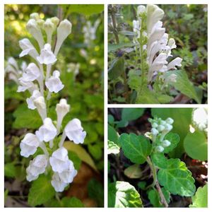 コバノタツナミソウ(小葉の立浪草)白花 シソ科 庭中に拡がって咲いています。 繁殖力が旺盛で大変す😥