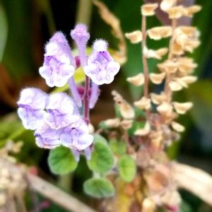 コバノタツナミソウ 別名ビロードタツナミ 以前花後の萼の姿を「教えて」タグつけてupしました😅 今回はお花咲いてまーす😅 2cm程の唇型の薄紫、白色の花が 一方方向を向いて 重なりあうような花穂の様子を 打ち寄せる波に例えて、、、 わかるわ~🤗 ビロードってのも😌