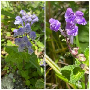 左側 コバノタツナミソウ 右側 コバノタツナミソウ コバノタツナミソウは牧野植物園で撮りました🌸 右側は南国市十市の里山 花の色が植物園のは薄いが1つの茎に花が沢山💕 葉はどちらも小さく同じように見えます💕 高知県はコバノタツナミソウが多いと植物園の方は言ってました🌸 すずはなさんからコバノタツナミソウに似てると教えてもらいました❤️