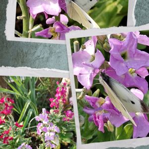 こんにちは😊 花壇のストックにモンシロチョウが…そろそろ寒くなるよ。大丈夫かな…