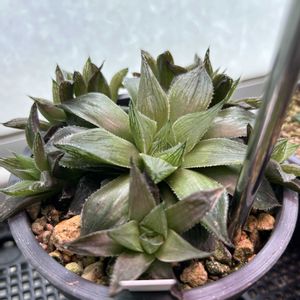 我が家のハオルチア達の4月です。 ①オブツーサ 花芽がニョキっとしています。 ②紫クイーン 子株?新芽?がニョキニョキしております。 ③レディ ホームセンターでモリモリになっている苗のそばを通ったらカバンが当たって子株がひとつもげてしまい、あちゃー😣と購入してお迎え。レディは群生を楽しむようですが………あまりにもミチミチなので植え替えの時に株を分けてすっきりしてもらいました。あとで増えるのを楽しみにします。