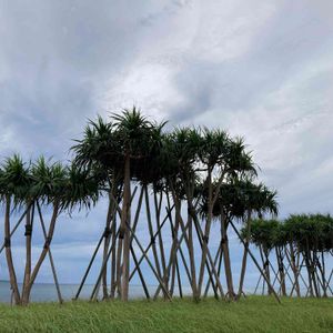アダンの木🌳 沖縄本部のエメラルドビーチ🌊 台風にはソワソワしたけれど、無事に到着✈️ 移動中はスコール並みの激しい雨も降ったけれど☔️ ホテルに着いて、ビーチに行けた〜😃✨ 🏷平和を願う🕊 撮影 17:30 🕰