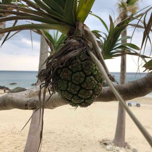 沖縄旅行で出会った木 パイナップルではありませんでした。 アダンと言うそうです。 沖縄ではたくさんのアダンの木を見かけました。 砂浜と陸地の境目に自生していて、 その実は見た目はパイナップルそっくりでした。
