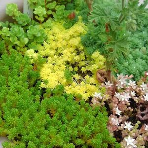 セダムもりもり ローズゼラニウムの足元にまいてみた