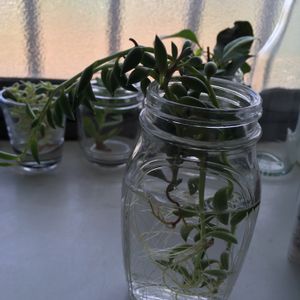 おはようございます😊 水耕栽培part① 白〜い根っこキレイ✨ 三日月ネックレスとルビーネックレス、土の上ではしばらく変化が見られず(シワシワになってきちゃったし💦我慢出来ず。。。)、水耕栽培に切り替えました!