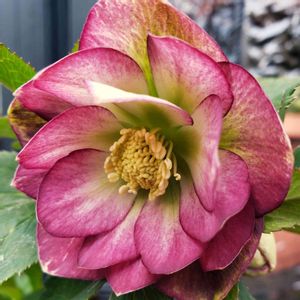 クリスマスローズ プリマヴェーラとの交配品種らしく、ピンク色がのっています。 綺麗な花形で咲いてくれました。